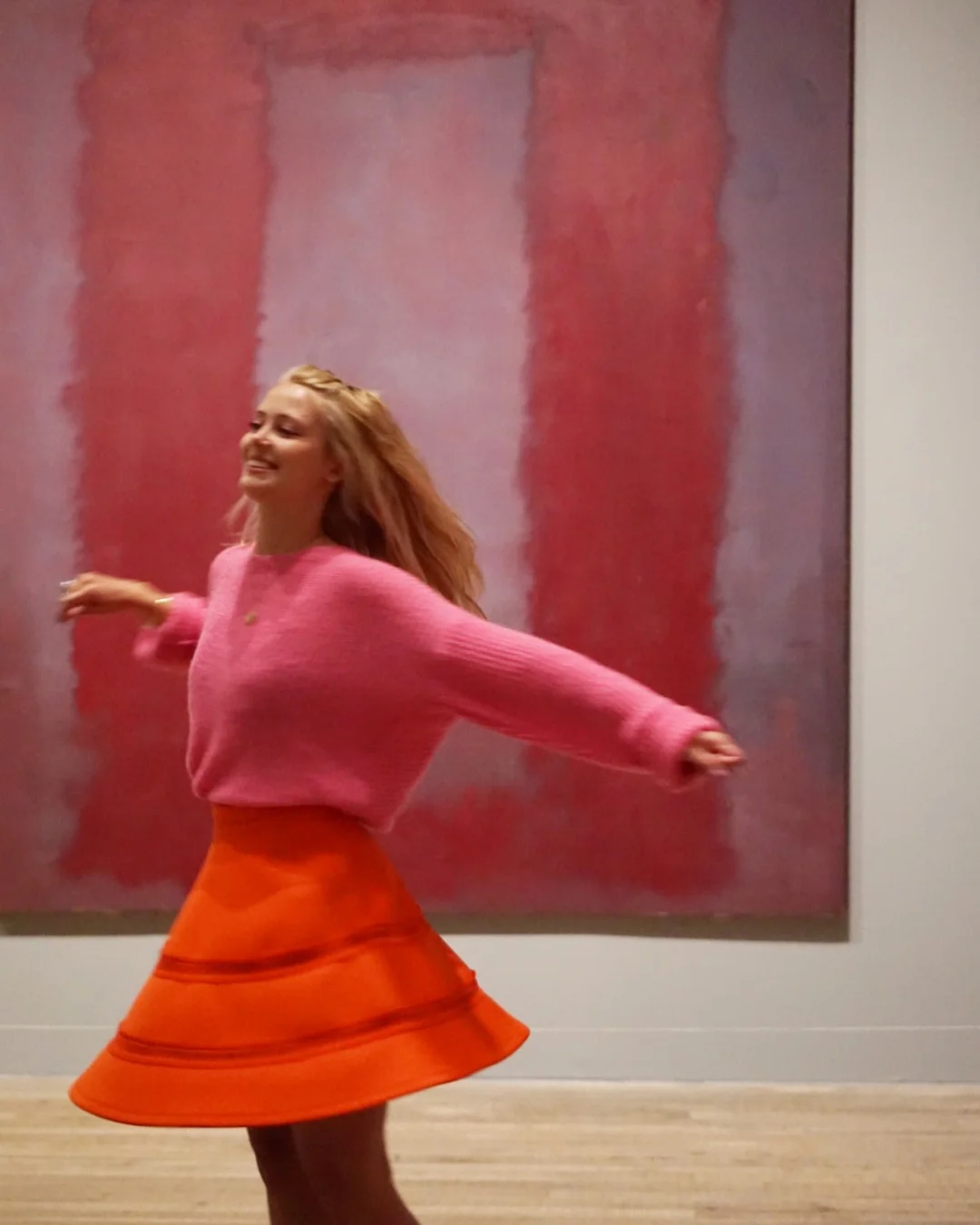 AS: After one of my trips to an art fair, I realized I had so many pictures and nowhere to share them. I didn’t want to spam my private Instagram with art pictures as I know that not many of my friends actually appreciate art. That’s when I created my ‘art journal’. After some time I started posing in front of art just to give an idea about the size of an artwork or simply because I thought my jacket matches or something like that. I’d receive a very positive response to those pictures and I started to think more about staging and curating my pictures. I think this way I make art more accessible. I attract people that would look at fashion but not art but this way they might say ‘oh look what to cool painting as a background for that dress’. I also think that fashion is a form of art. Not of course everyday clothes that everyone wears but I’ve just started communicating with young talented designers or fashion design students and my aim is to start curating pictures with their design in front of works of art.
