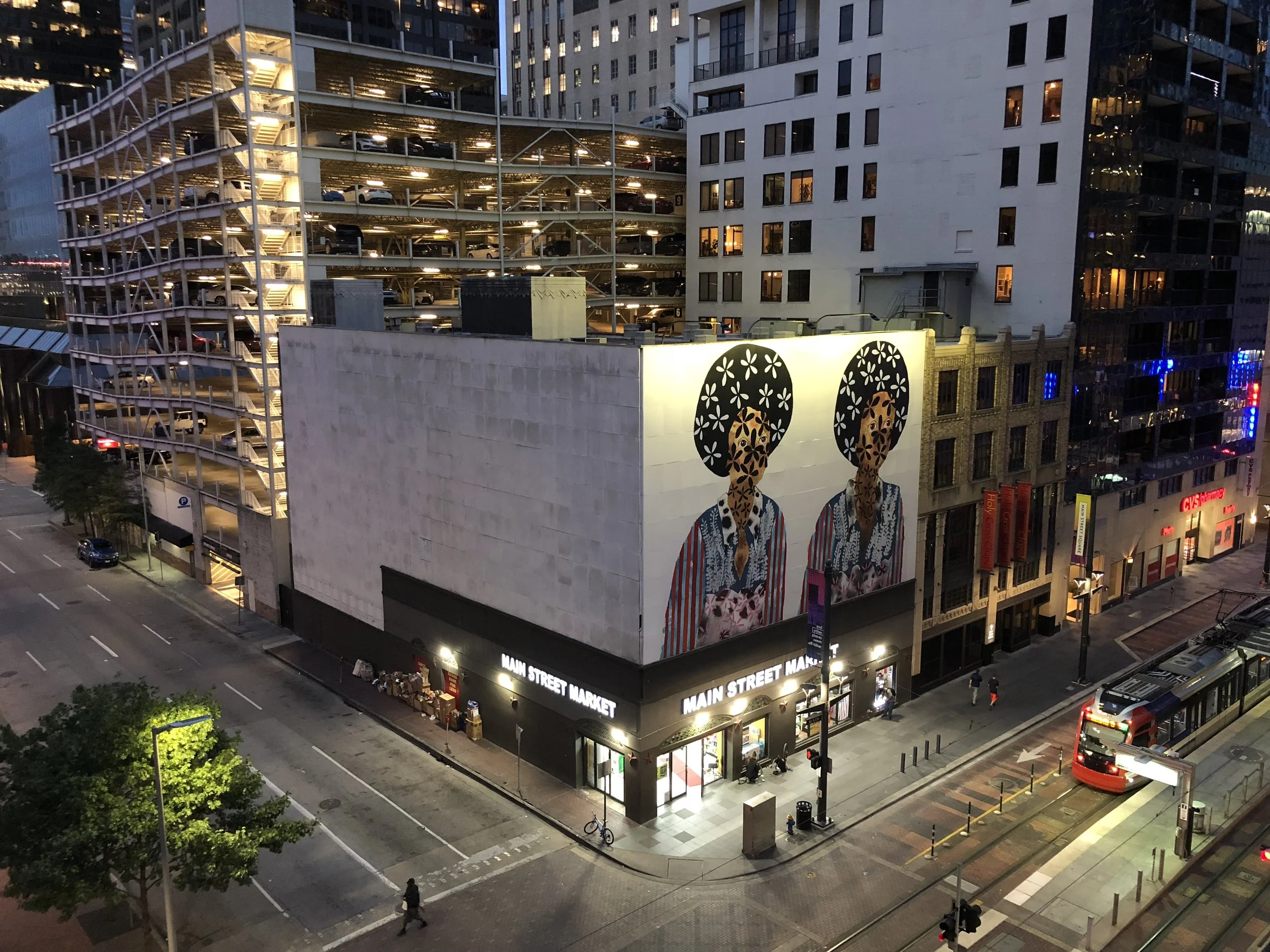 Erika: You recently had a painting of yours, Twins, displayed in Downton Houston's Main Street Square. Can you talk about the process of having a work of yours translated into a mural and how it was seeing your work that large?