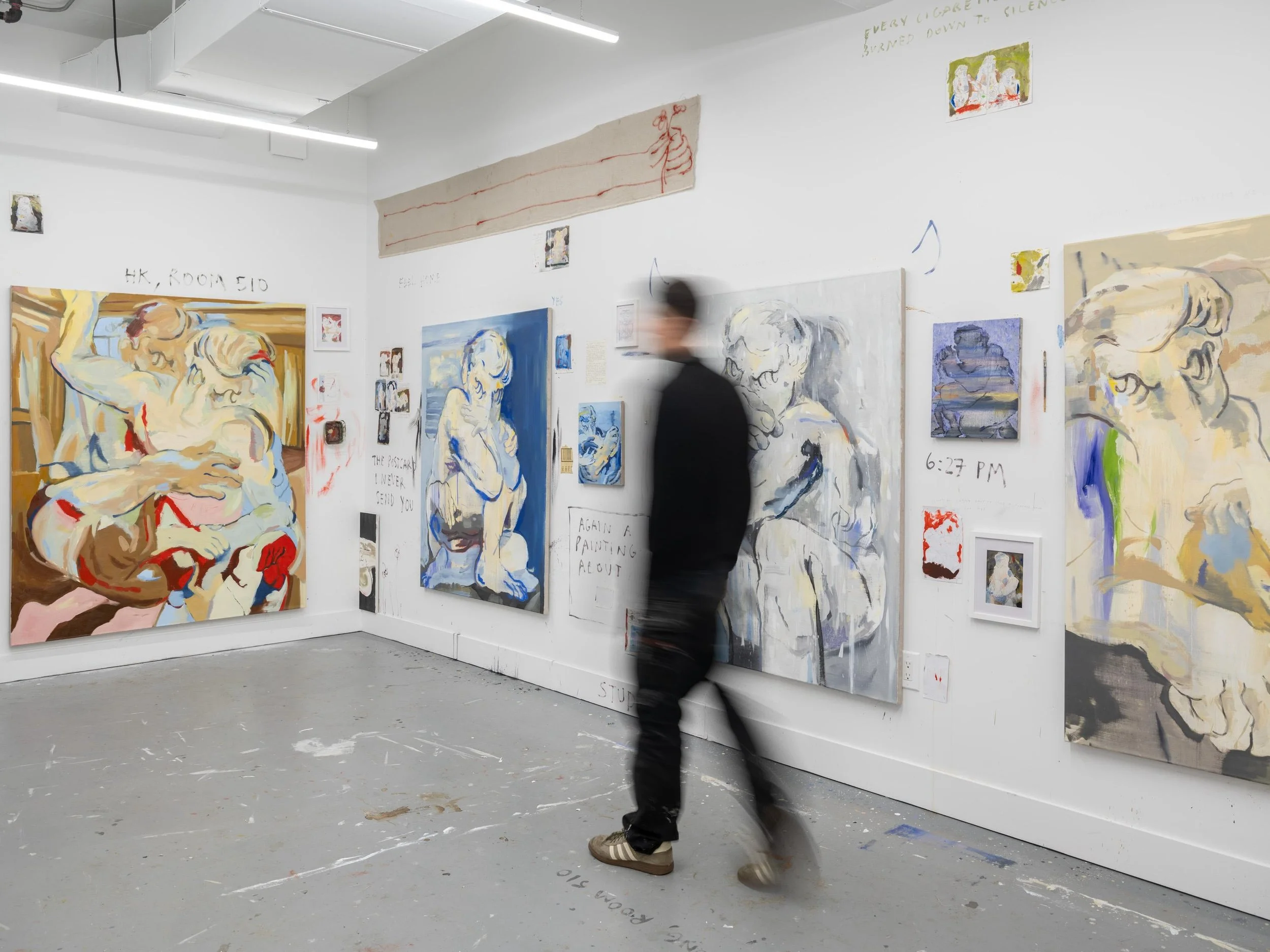In the studio right now, I am pushing questions of repetition and fragmentation. The figure no longer exists as a single presence but as a sequence, a group, a delay. I am interested in how an image can carry several moments at once, how identity can multiply without becoming narrative. The challenge is to let the work evolve in scale and ambition while keeping its emotional risk intact.