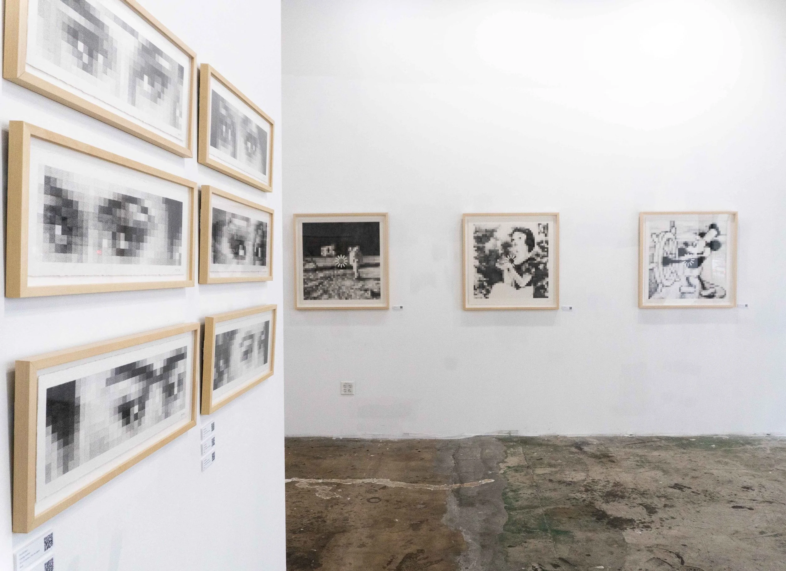 Your work is known for the pixelated grid of cultural imagery, usually done in black and white. How do you decide on the source imagery?
