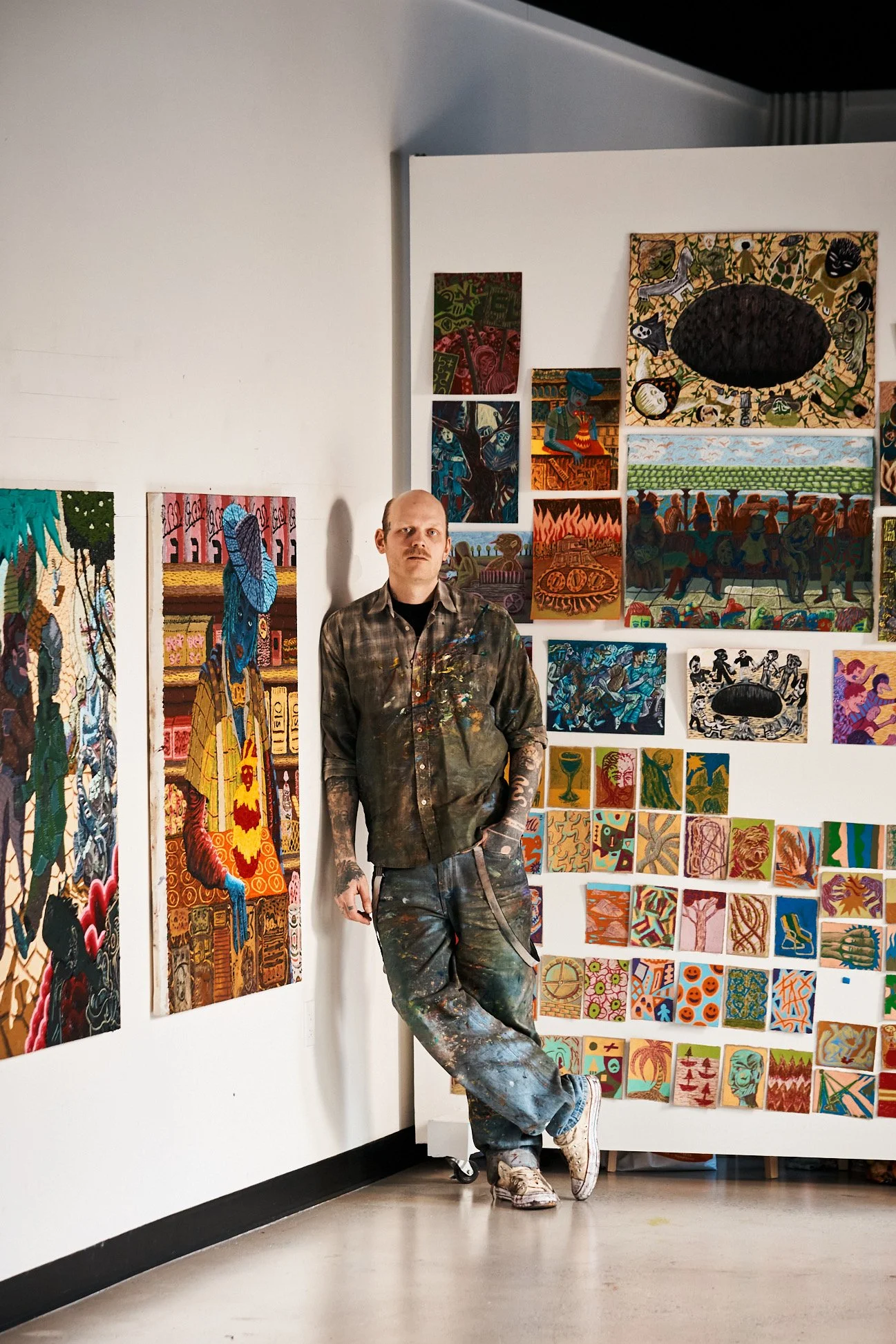 It might make me sound lazy or like I am patting myself on the back but it is the easiest way for me to express myself. I feel like it is the medium where I can do whatever I want. Tieing into the previous question I am a shit musician compared to my understanding of the painterly medium. It is a medium both with strict limitations and endless possibilities and eventually, after painting your way past the first hurdles of the medium, it becomes a window into a world you can’t access any other way. Today I feel that painting is like exploring. It is a bit of a silly allegory but sometimes I can relate to the kids in Narnia that enter the wardrobe and end up in this other space. Painting is like that to me, even when I was painting purely abstract. I can look back at what I have made and be taken aback that all of that is from a world inside me that I never really designed but more something I found. It makes it very addictive to see what is around the next corner.