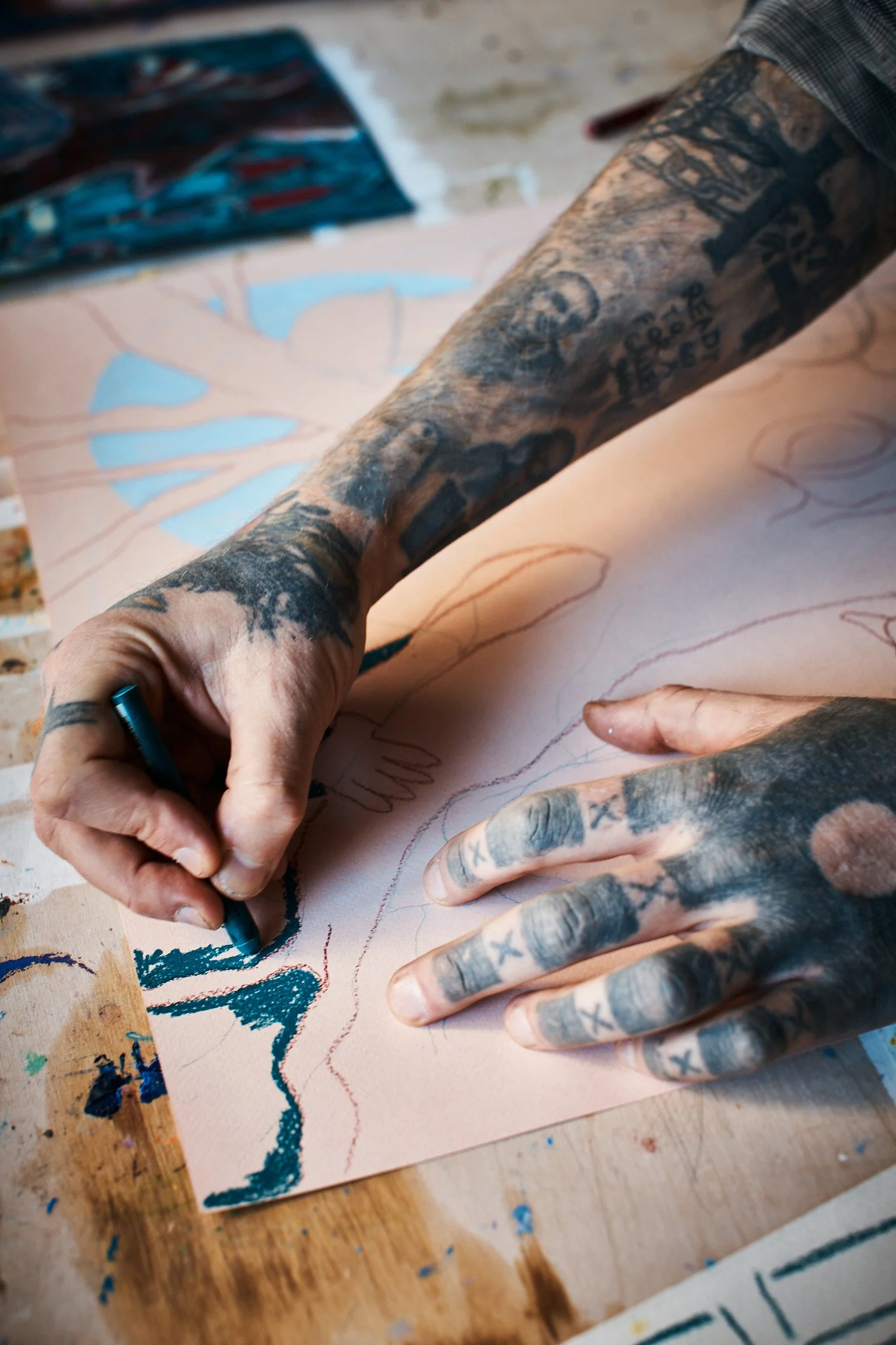 Instead I was way into the punk scene at the time. Making posters, fanzines and different designs for my own and my friends' bands. A little bit later, based on all the older punks having so many tattoos, I decided to try my hand at tattooing and began an apprenticeship at a studio that I eventually got kicked out of based on my poor drawing skills. I started a basic art education to learn it better and during this time I completely fell in love with painting. Both looking and making.