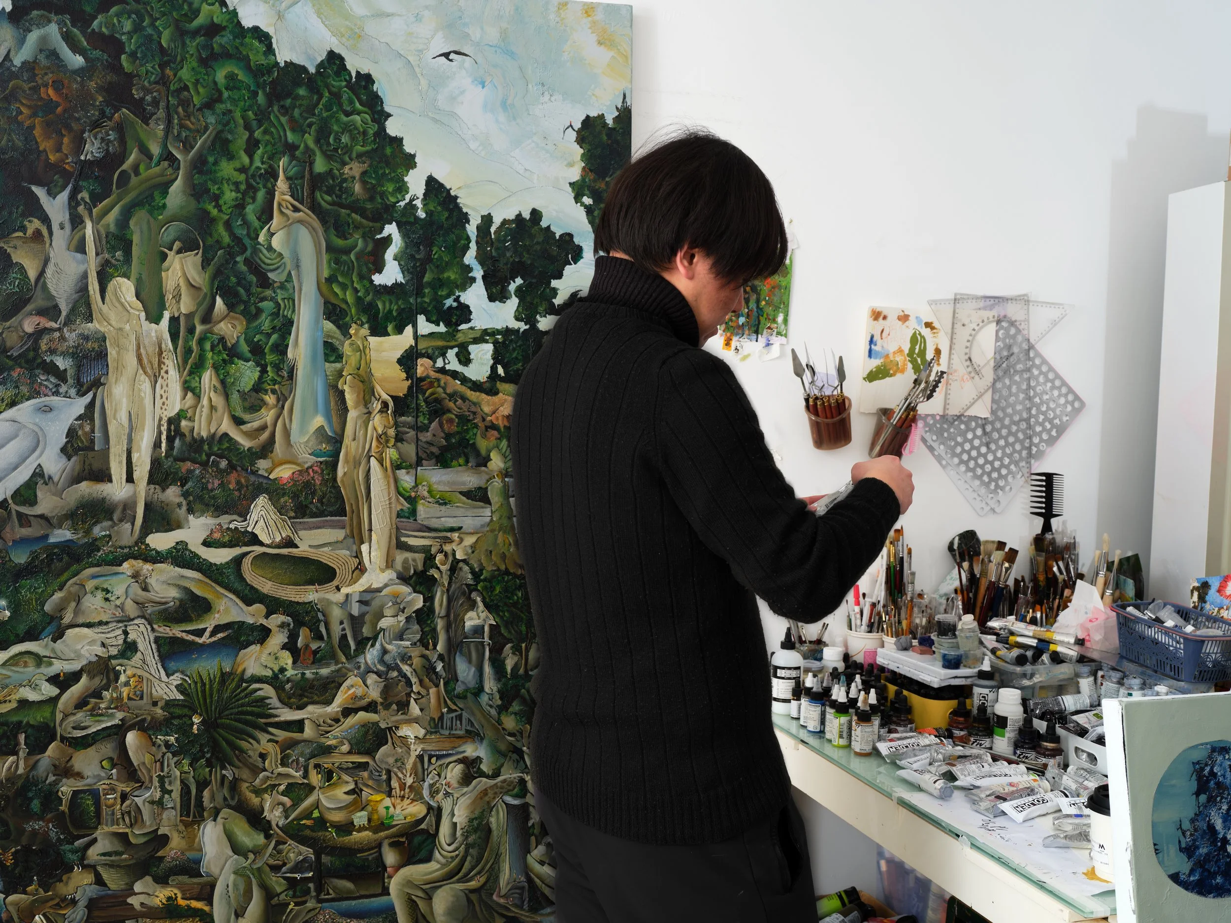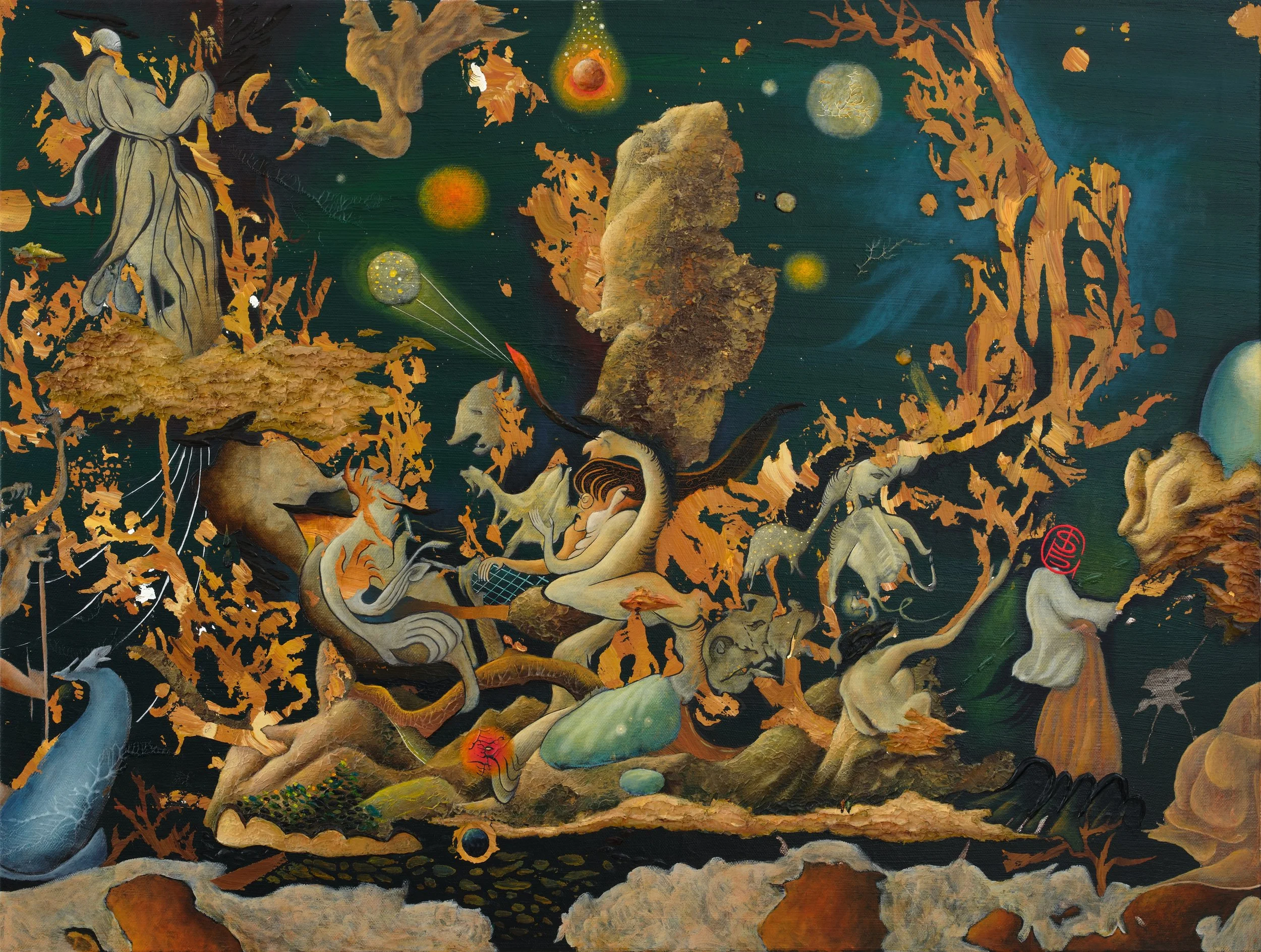 Lately, I’ve been studying the landscape paintings of Ming dynasty artist Wu Bin. The structure of his mountains and rocks is incredibly surreal, almost dreamlike. Moving forward, I aim to further expand and refine this surrealistic thread in my work: Bosch → Wu Bin → Ernst. I hope to create even more distinctive works that explore this lineage.